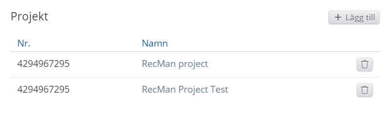 - Här kan du se vilket projekt attestanten är kopplad till och du kan lägga till fler eller ta bort projekt.