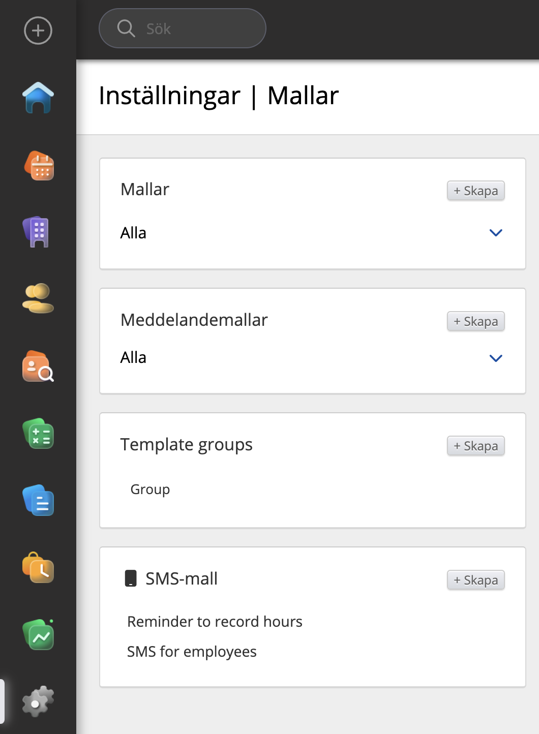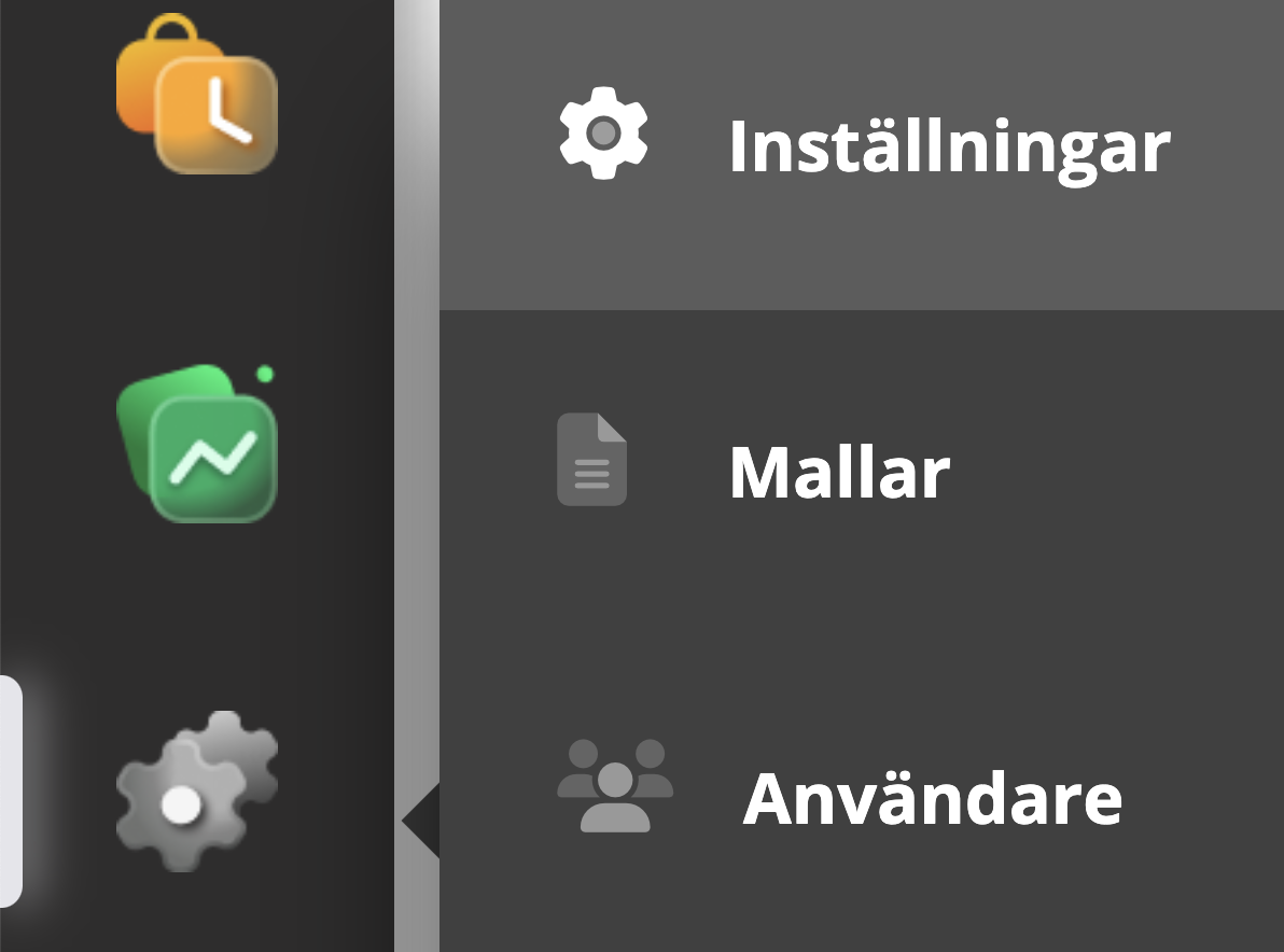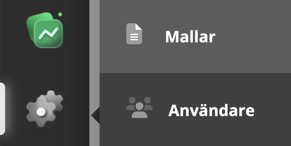 Eller så kan du välja undermodulen Mallar direkt när du håller muspekaren över inställningsikonen.