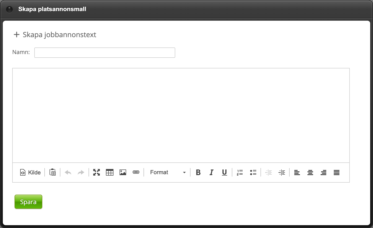 Det finns några olika inställningar när du skapar en mall. Här är en förklaring till var och en av dem.
