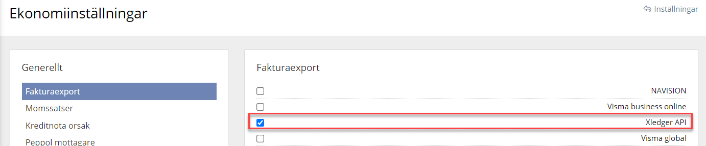 Mer information finns i den här artikeln Xledger API (Fakturaintegration).