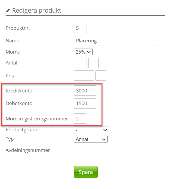 Det är viktigt att tänka på att du anger rätt kredit- och betalkonto samt momskod.