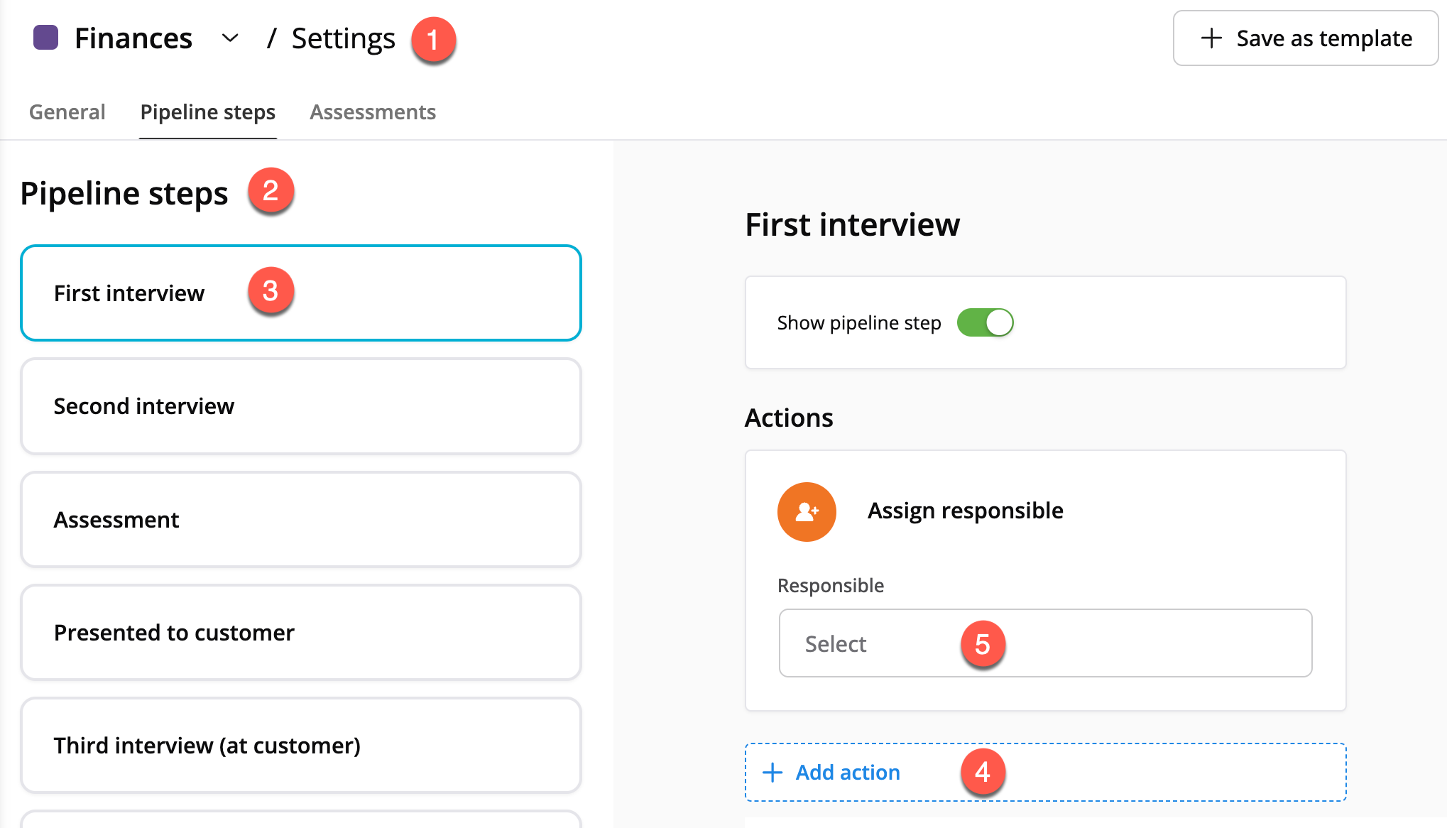 Du kan automatiskt tilldela en medarbetare till en kandidat när deras kort flyttas till ett specifikt steg i din rekryteringsprocess. Skapa bara en regel i inställningarna för det aktuella steget.