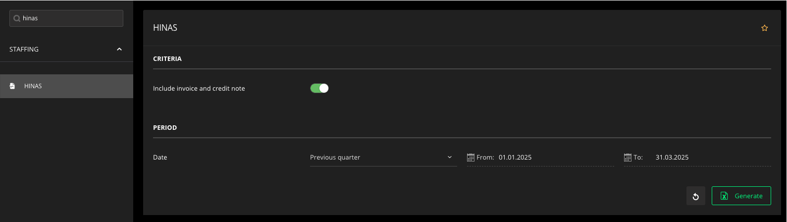 När konfigurationerna i RecMan BI är klara kan du komma åt HINAS-rapporten. Denna rapport genererar en lista över alla fakturarader relaterade till artiklar i ett format som gör det enklare att vidarebefordra rapporten till HINAS. En manuell process kan dock vara nödvändig beroende på din uppsättning.