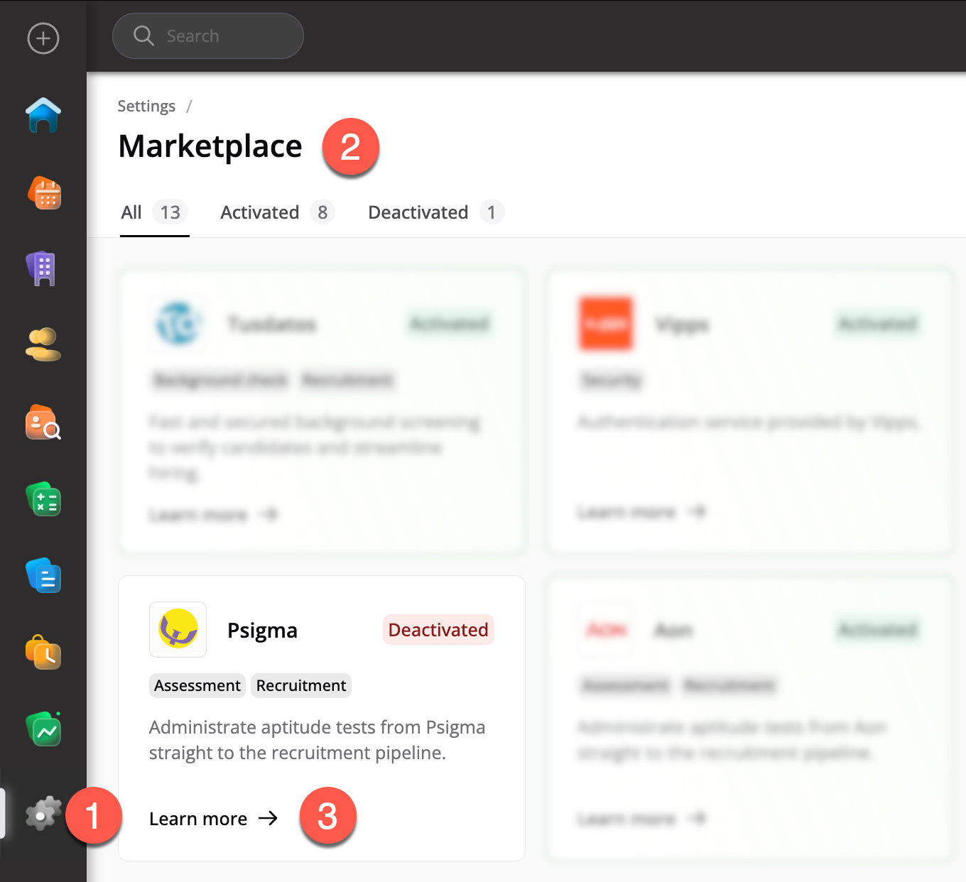 För att aktivera Psigma-integrationen, gå till Systeminställningar och välj Marketplace.