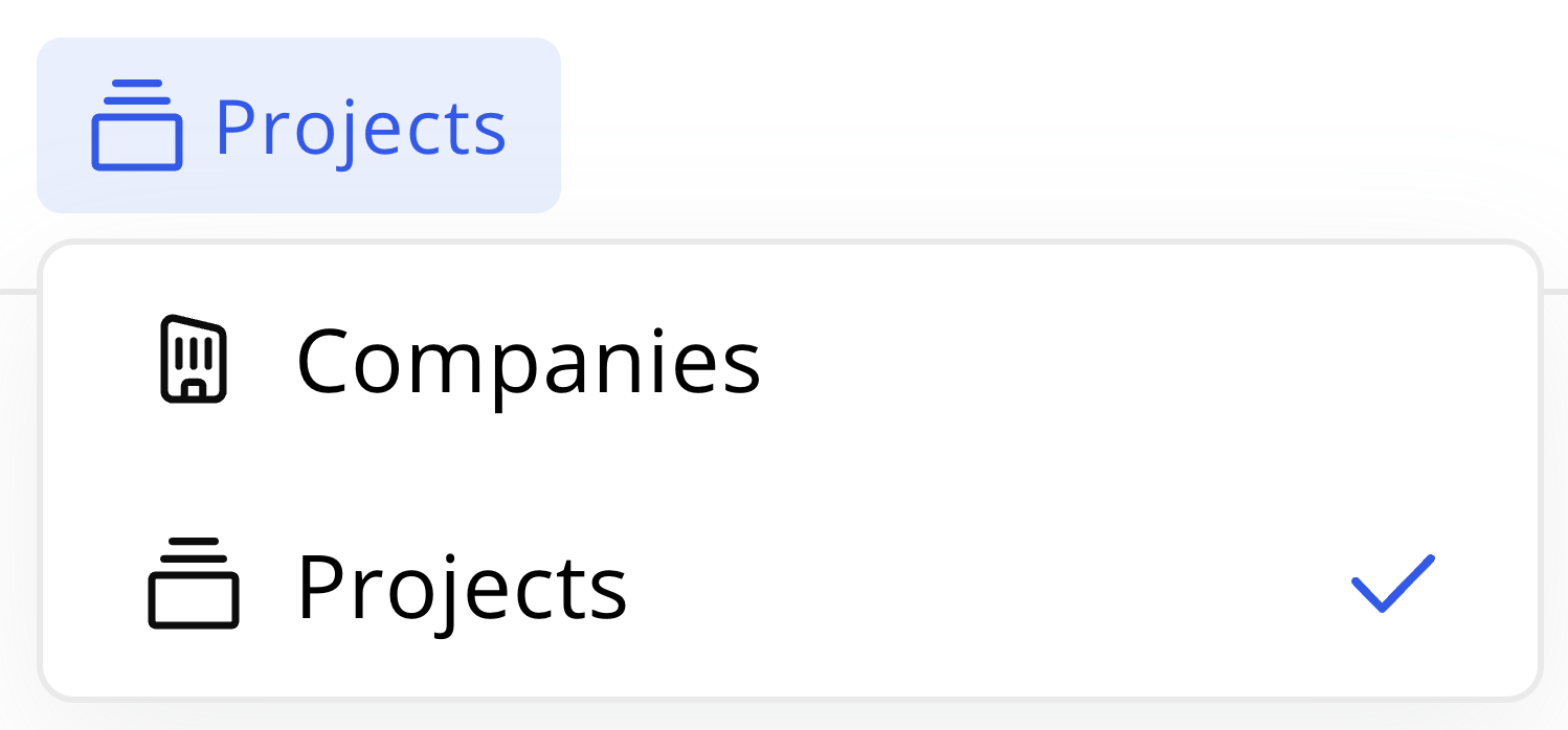 Välj vilka enheter som ska visas – företag eller projekt.