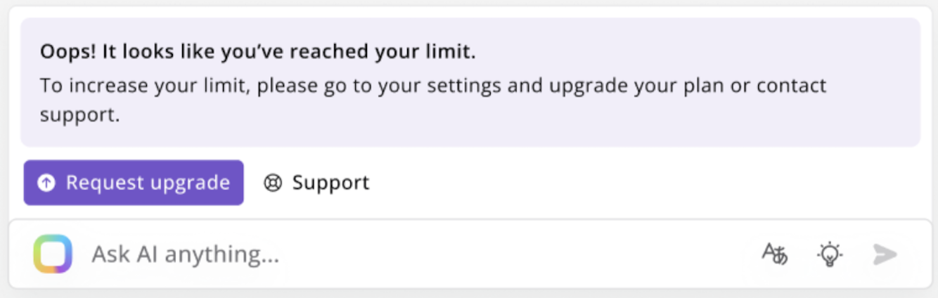 För att säkerställa rättvis tillgång och systemstabilitet har vår AI-agent en gräns för hur mycket den kan användas per dag för användare med en vanlig prenumeration.